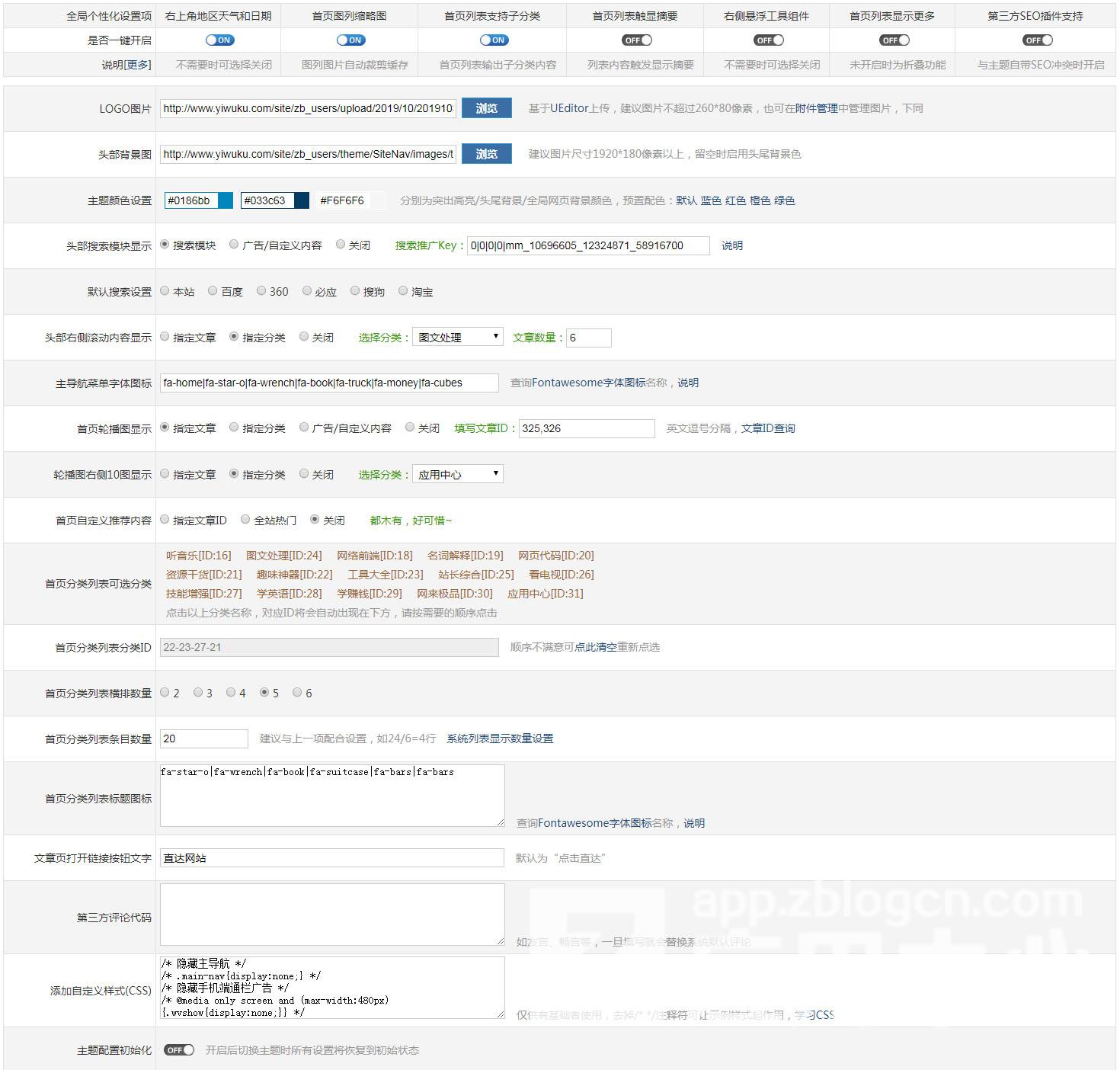 v2.9:新增首页自定义推荐模块(支持按点击量和指定文章ID),新增主导航菜单自定义字体图标设置,优化几处样式等(感谢火火、落叶、胖胖的猪头等用户反馈建议);