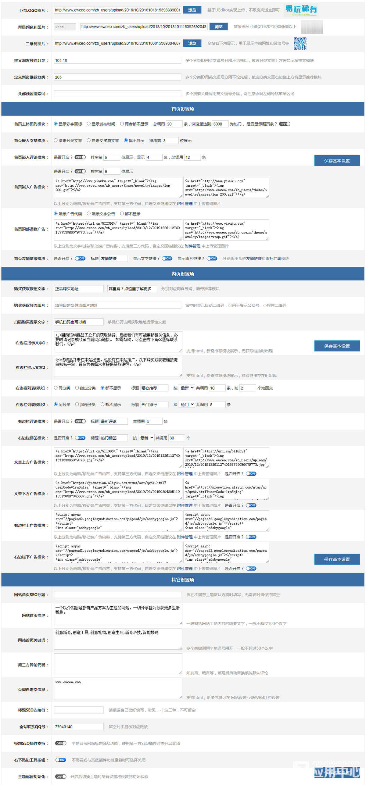 主题一共含有4个广告位,均支持电脑/手机端分别设置;