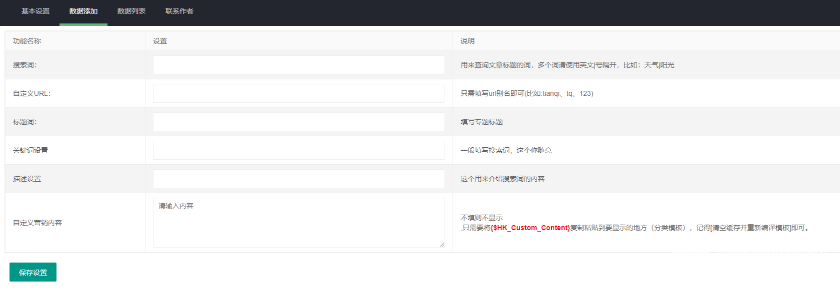 增加营销内容设置