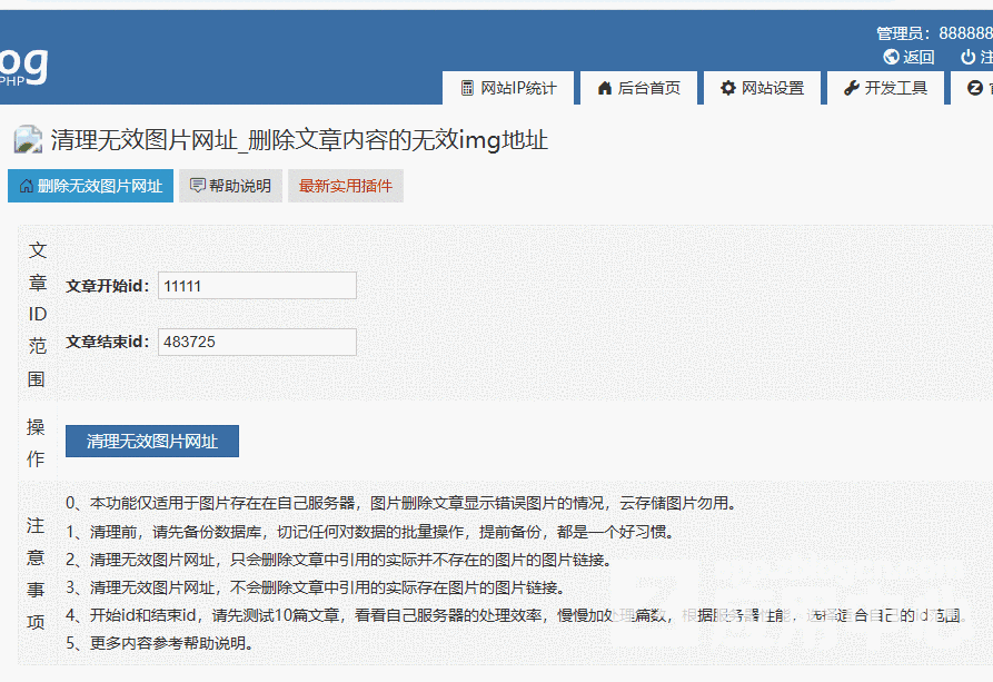 《清理无效图片网址_删除文章内容的无效img地址》使用说明: